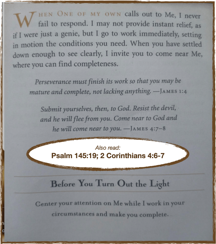 Jesus Calling Morning and Evening Devotional, (p.463), Sarah Young, 2015, Nelson Publishers, United States